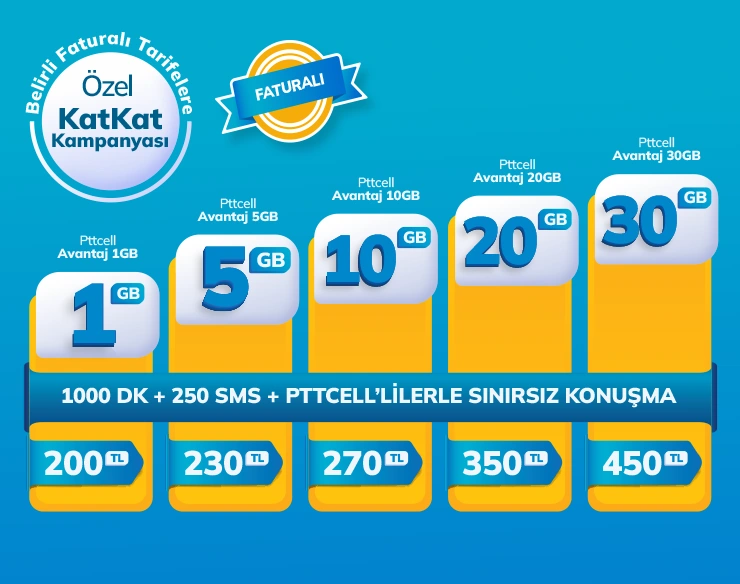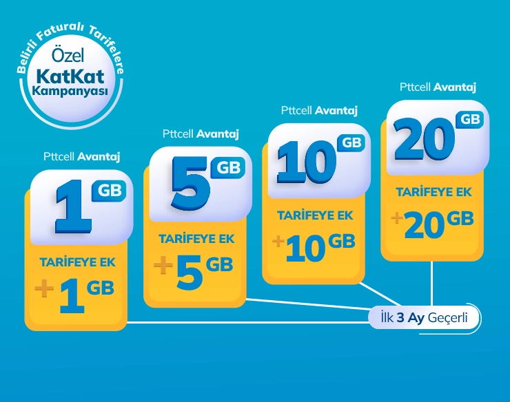 Pttcell Avantaj 1GB, Pttcell Avantaj 5GB, Avantaj 10GB ve Avantaj 20GB tarifelerine gelen abonelere özel 3 ay GB’larını 2’ye Katlama imkanı!